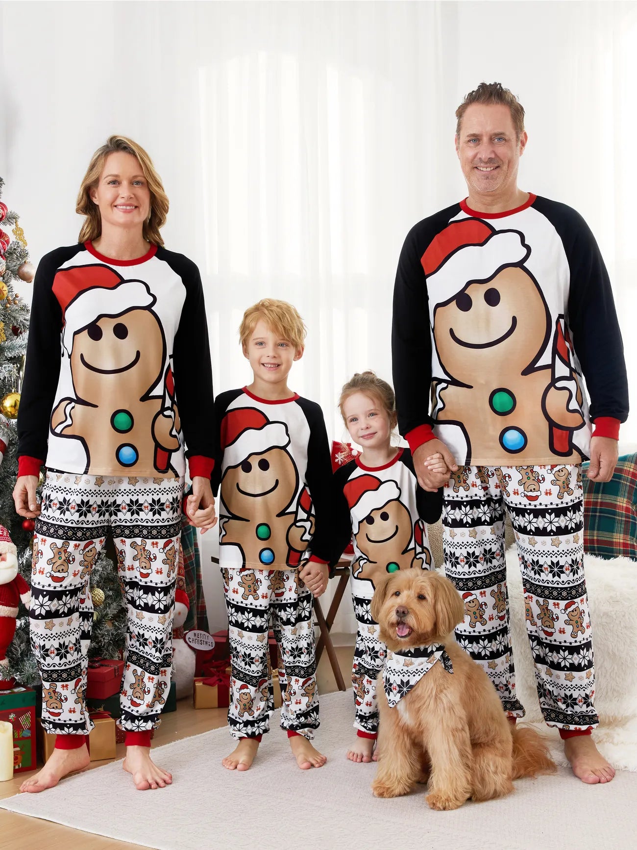 Family Matching Christmas Pajama Set With Gingerbread Design