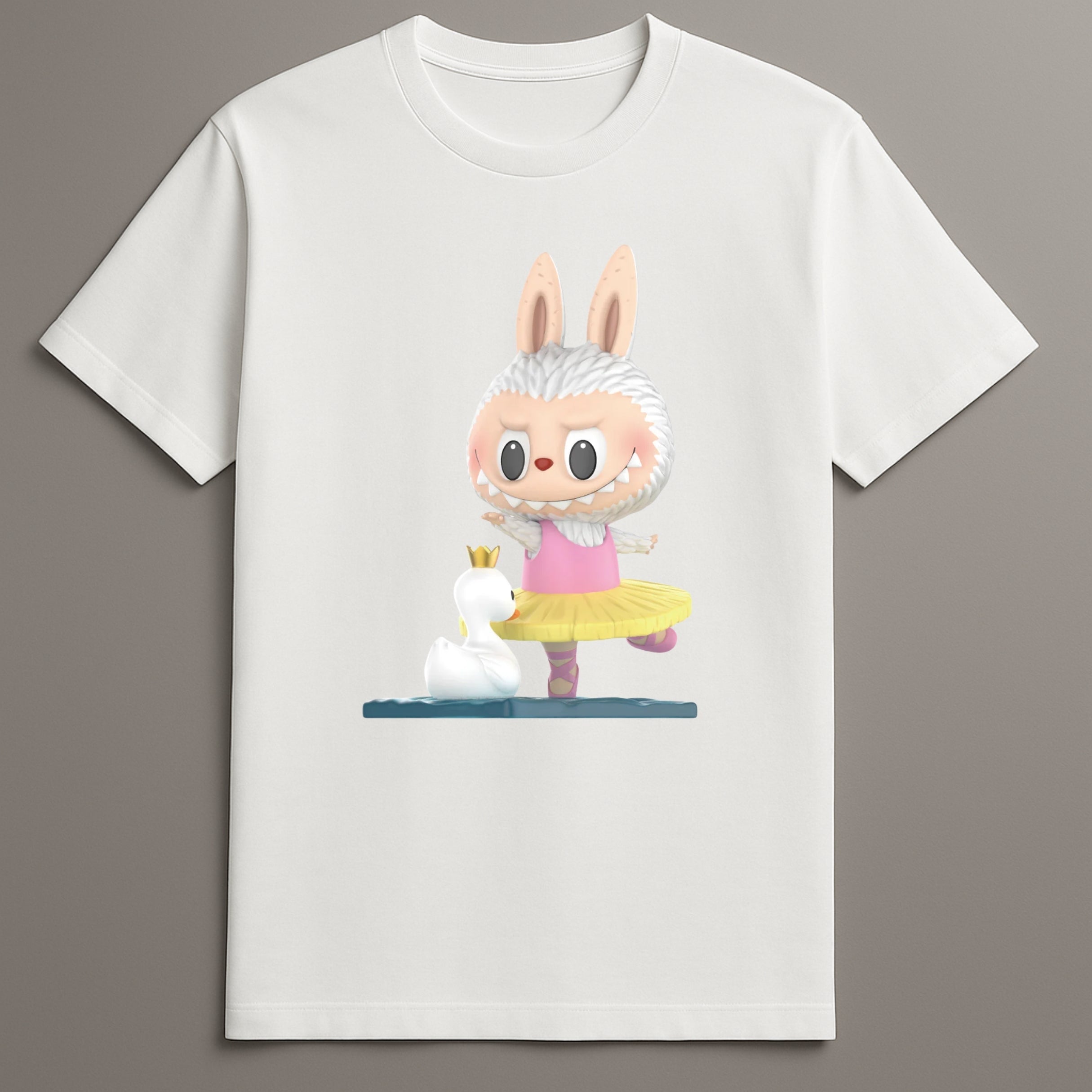 Labubu Swans Graphic T Shirt With Artistic Character Illustration