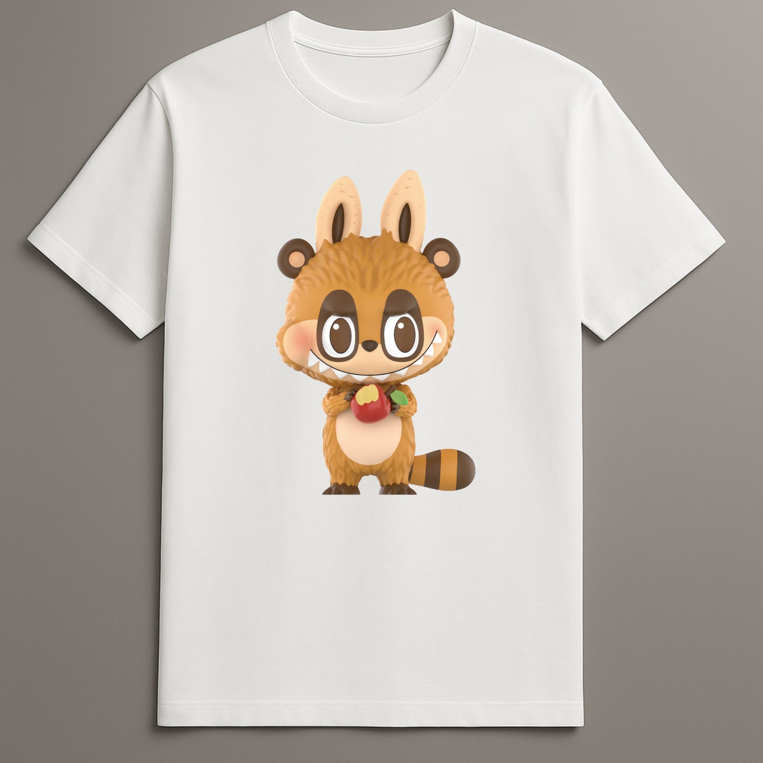 Happy Raccoon With Apple Graphic Labubu T Shirt