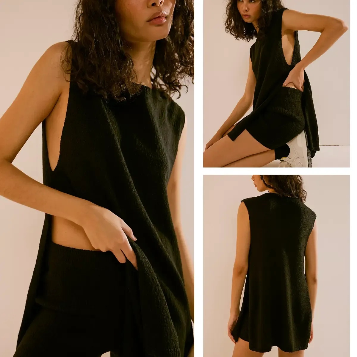 The Knit Tunic Shorts pairing also allows mix-and-match styling. The tunic can be worn with trousers or skirts, while the ribbed shorts can pair with lightweight tops or casual layers.
