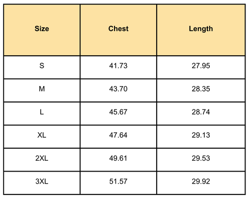 Size Chart(inches):