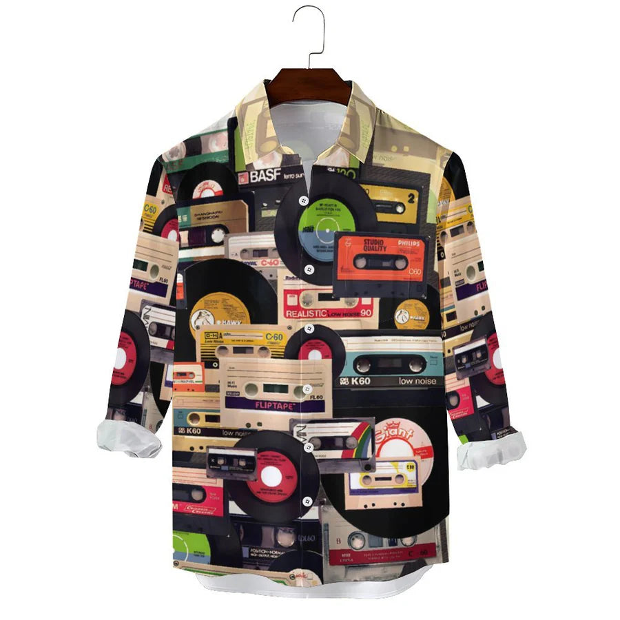 Experience comfort and style with this Casual Music tape Vinyl Record Printed Long Sleeve Shirt, perfect for various occasions. This shirt is designed to offer a classic look while ensuring you feel comfortable throughout the day.