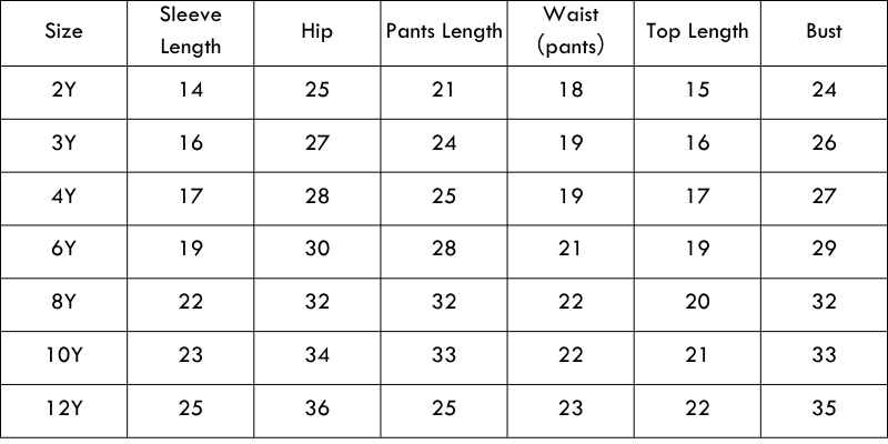 Kids Size Chart