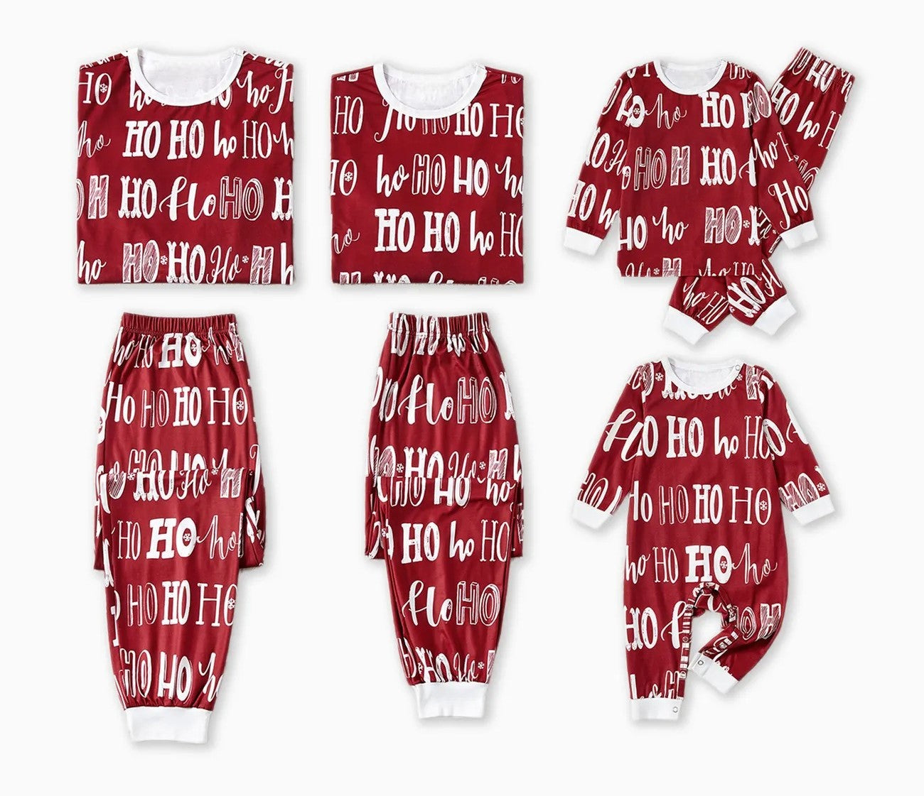 Get ready for festive fun with these matching family Christmas pajamas! Featuring an all-over "Ho Ho Ho" letter print, these pajamas add a cheerful vibe to your holiday season. Designed for comfort, these sets are perfect for family gatherings and cozy nights at home.