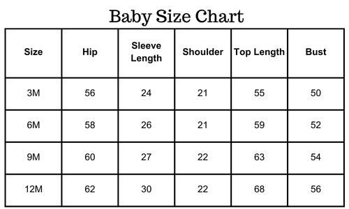 Size chart (inches):