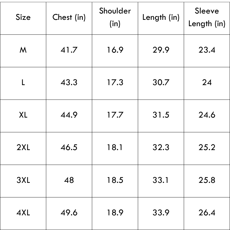Size Chart(inches):