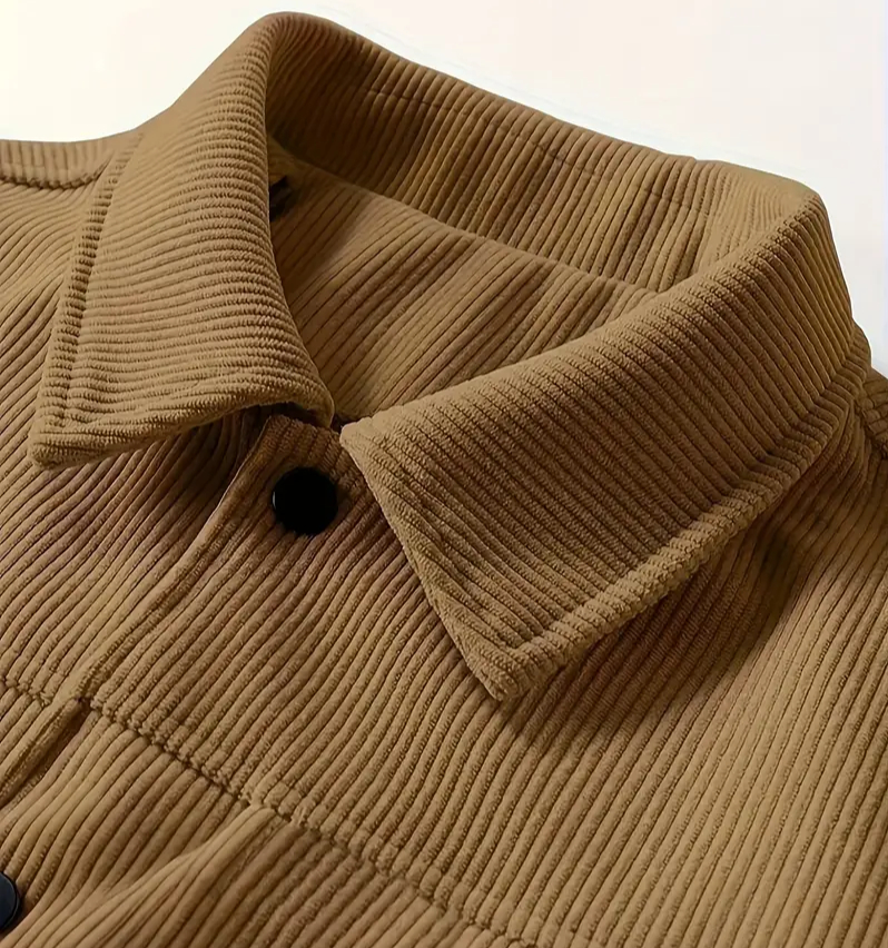Upgrade your wardrobe with this classic polyester corduroy jacket, designed to bring comfort and sophistication to every occasion.