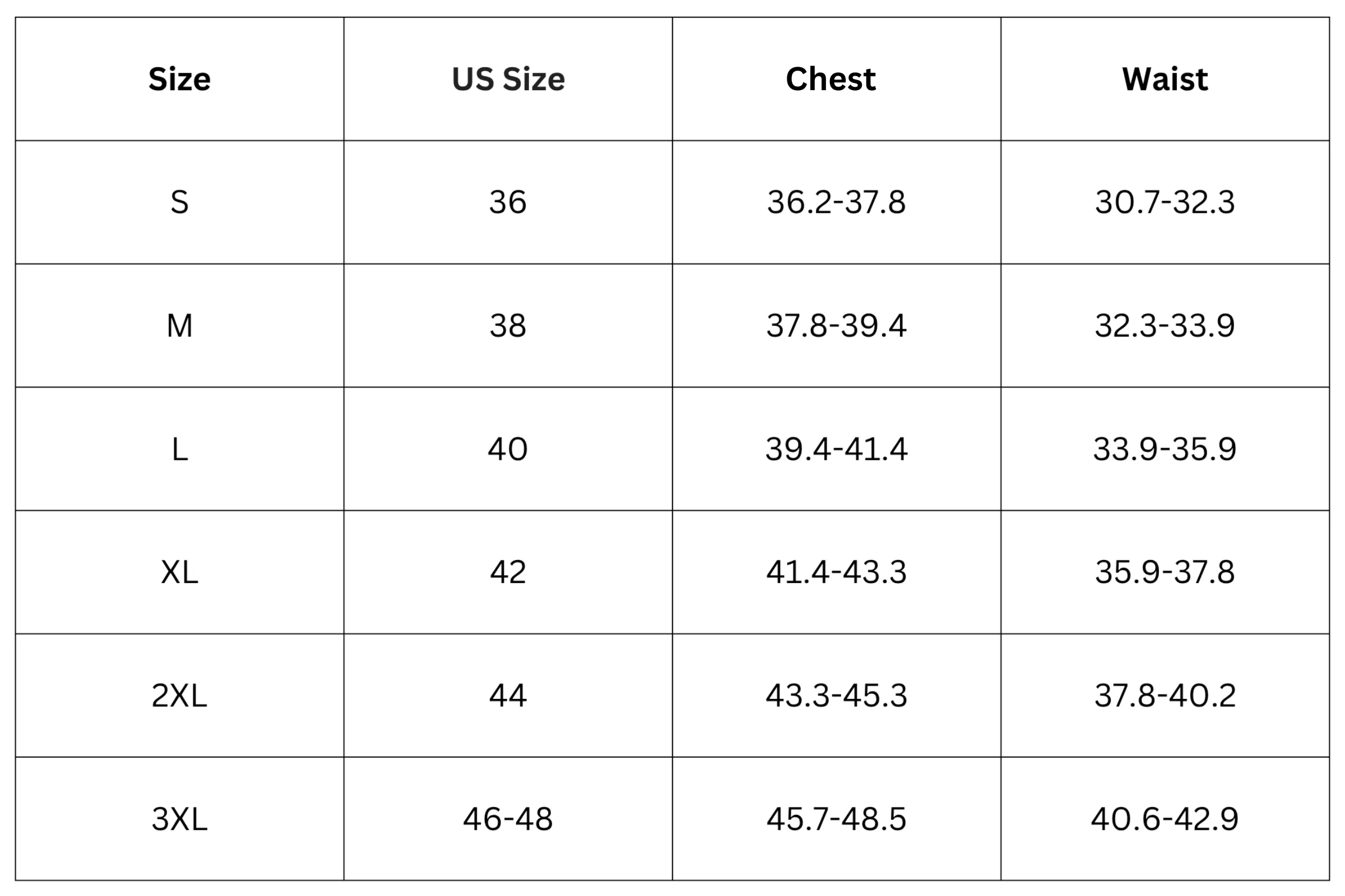 Size Chart (Inches):
