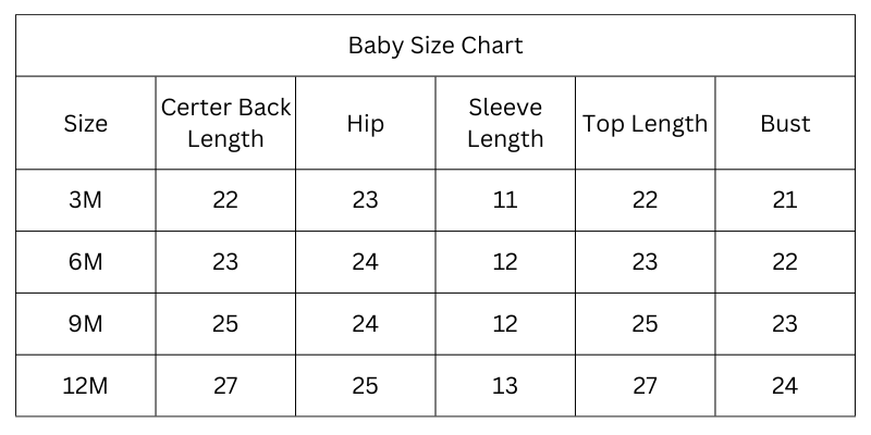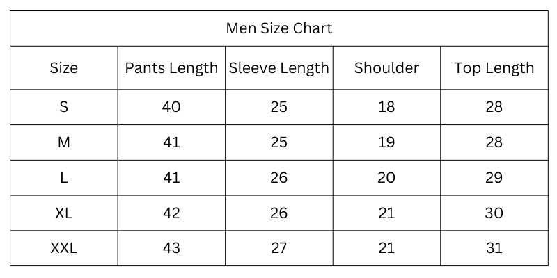 Size Chart (Inches):