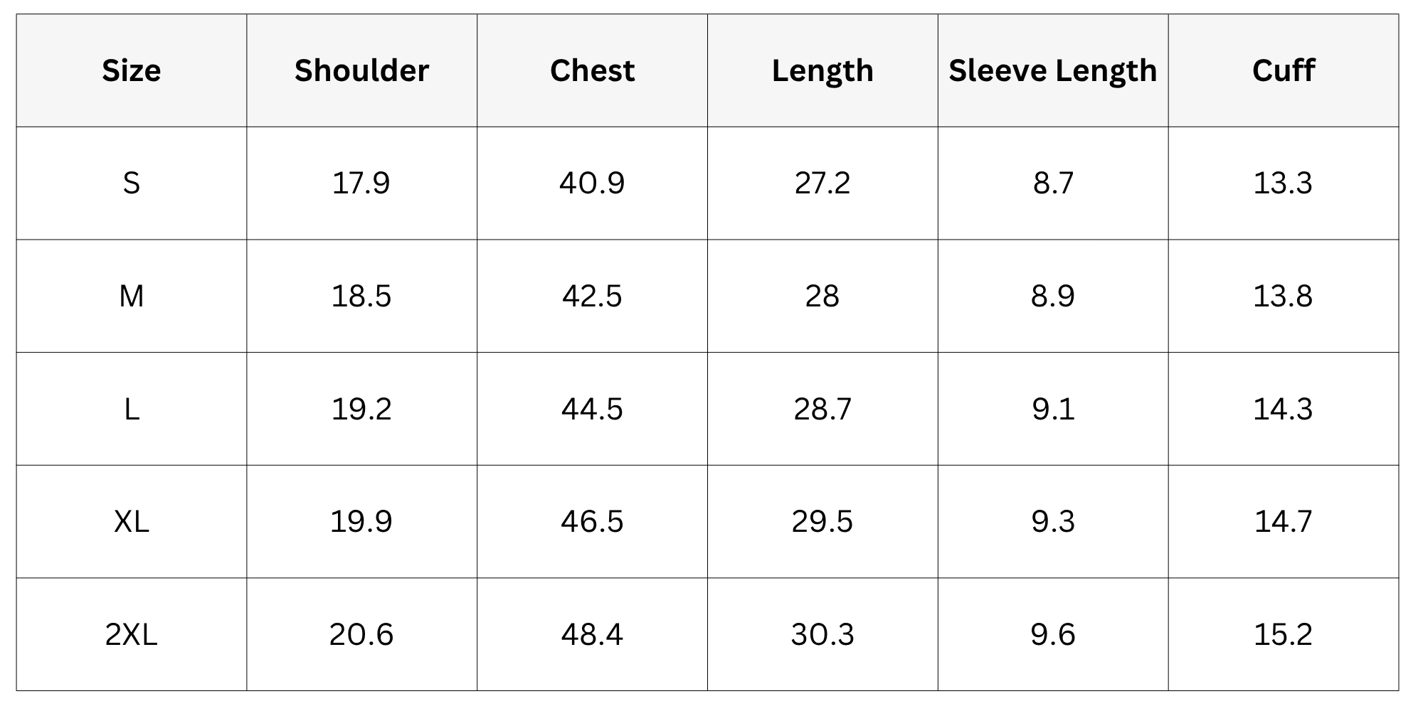 Size Chart: ( Inches )