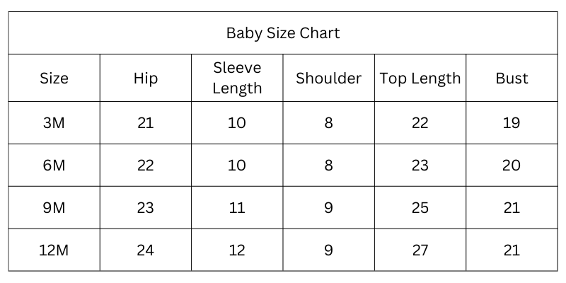 Size Chart (Inches):