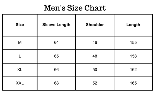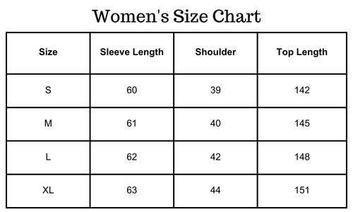 Size chart(inches):
