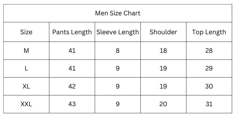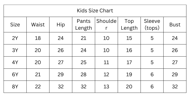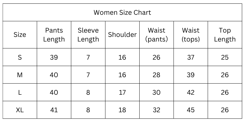 Size Chart (Inches):