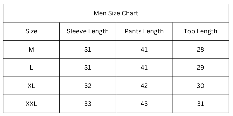 Size Chart (Inches):