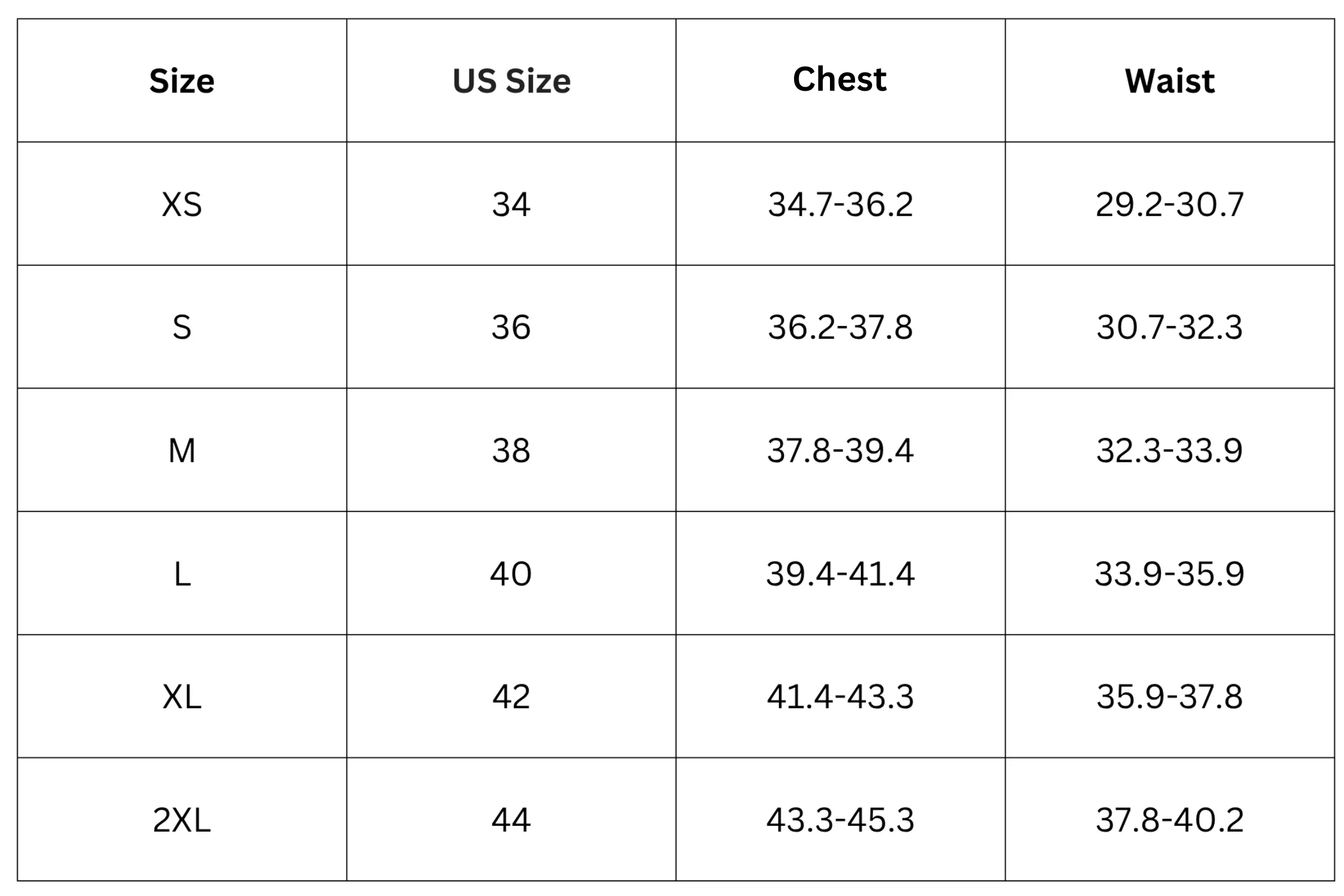 Size Chart (Inches):