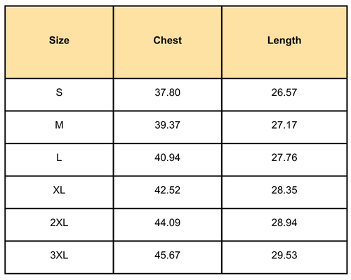 Size Chart(inches):