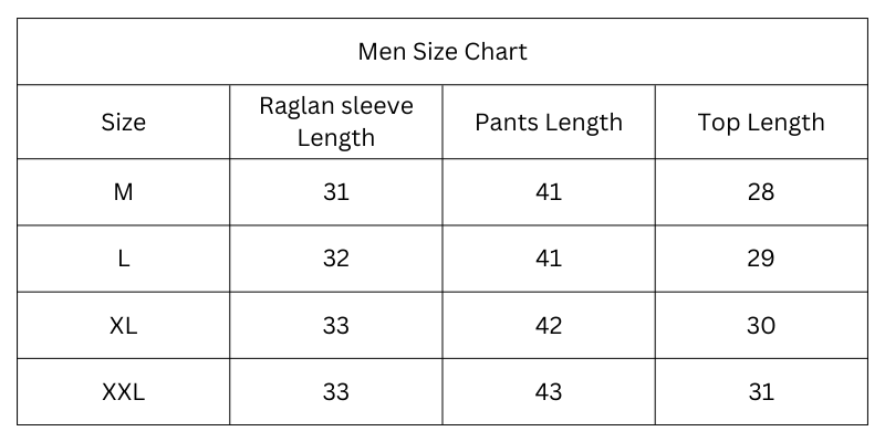 Size Chart (Inches):