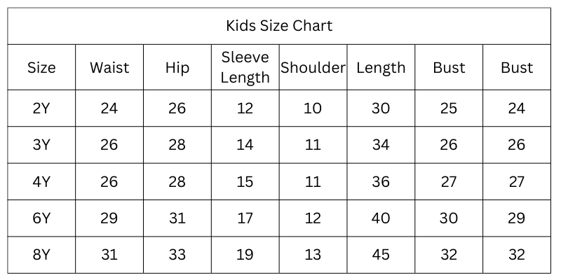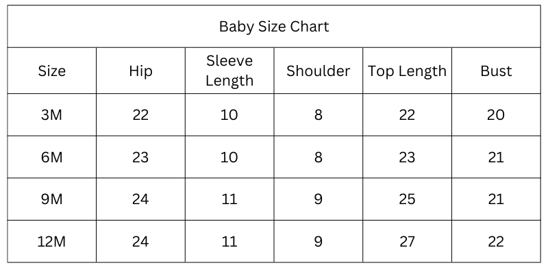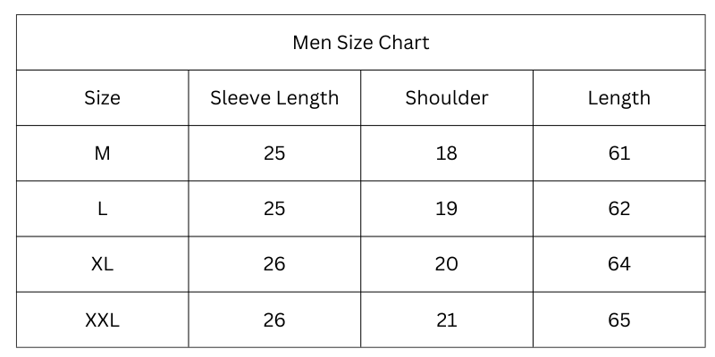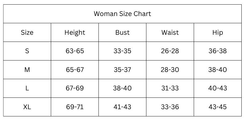 Size Chart (Inches):