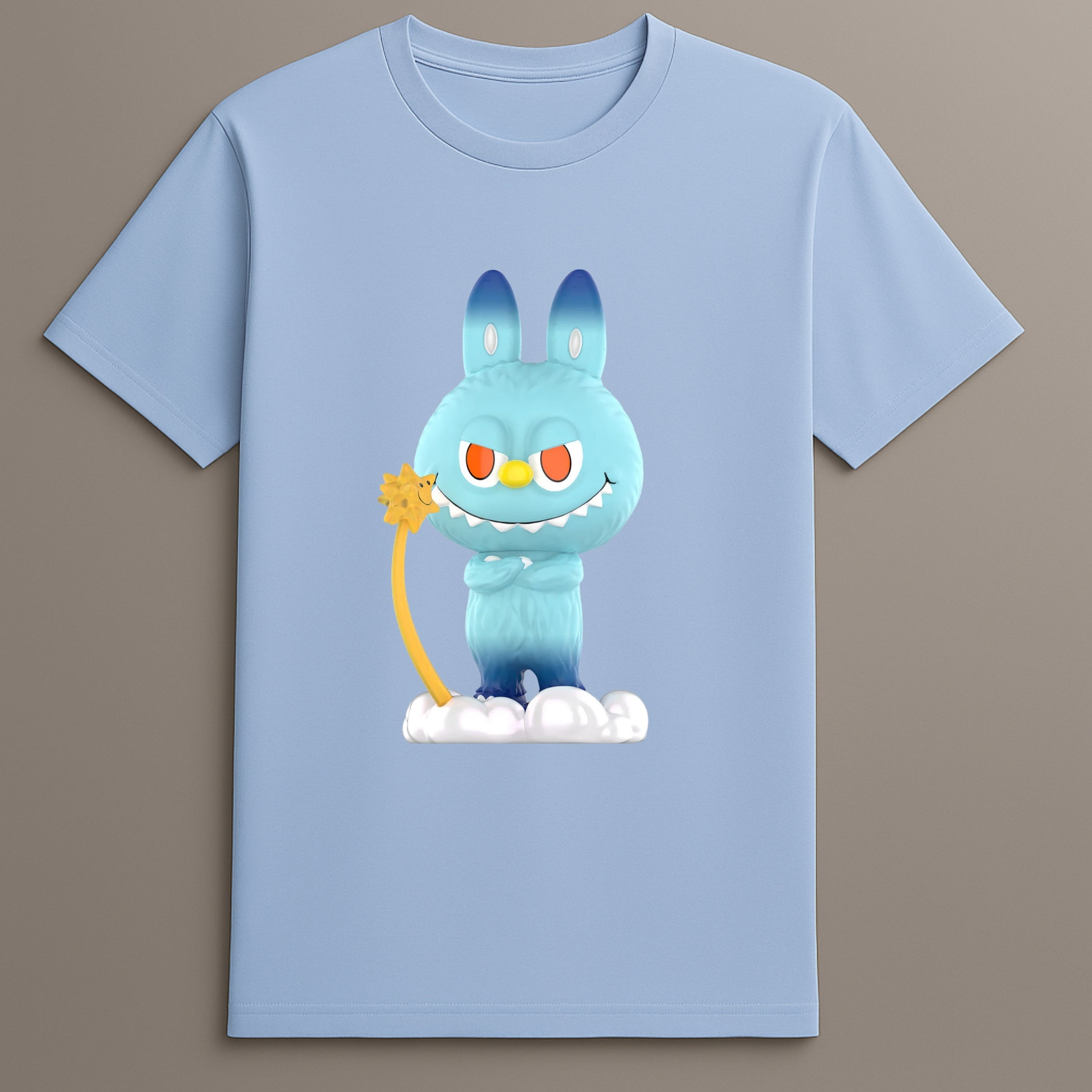 Add energy to your wardrobe with, the Labubu Cloud Bunny T-Shirt—quirky design meets casual comfort in a bold, character-inspired with everyday essential. Featuring a cloud-based bunny graphic and star wand detail, this shirt introduces personality into your look while keeping structure clean and wearable.