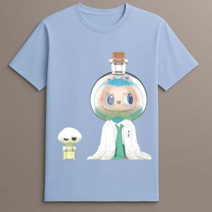 The Labubu Flask Figure T-Shirt brings narrative clothing into daily style. With its centered artwork, lab-inspired concept, and smooth fabrication, it suits fans of character fashion, figure art, and illustration-driven graphics.
