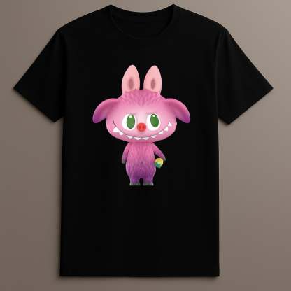The Labubu Furry Monster T-Shirt adds personality to any closet. Its vibrant pink monster graphic, subtle yellow flower, and soft material combine visual storytelling with everyday comfort. Whether worn for casual outings or shared across social feeds, this tee stands out with character and color.