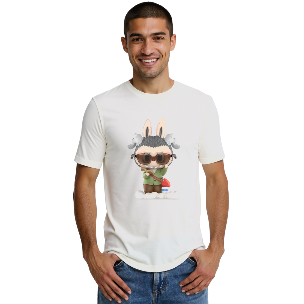 The Labubu Grandpa Bunny T-Shirt brings charm, humor, and character design together in one standout piece. Featuring a white bunny with gray-tipped ears, stylish sunglasses, and a cane, this shirt adds visual storytelling to your everyday wardrobe. With its unisex fit and clean structure, the shirt blends a playful elder character with casual comfort, making it a creative addition to your lineup.