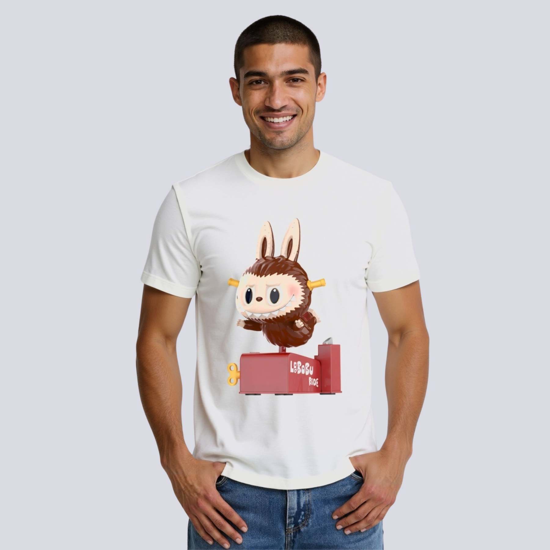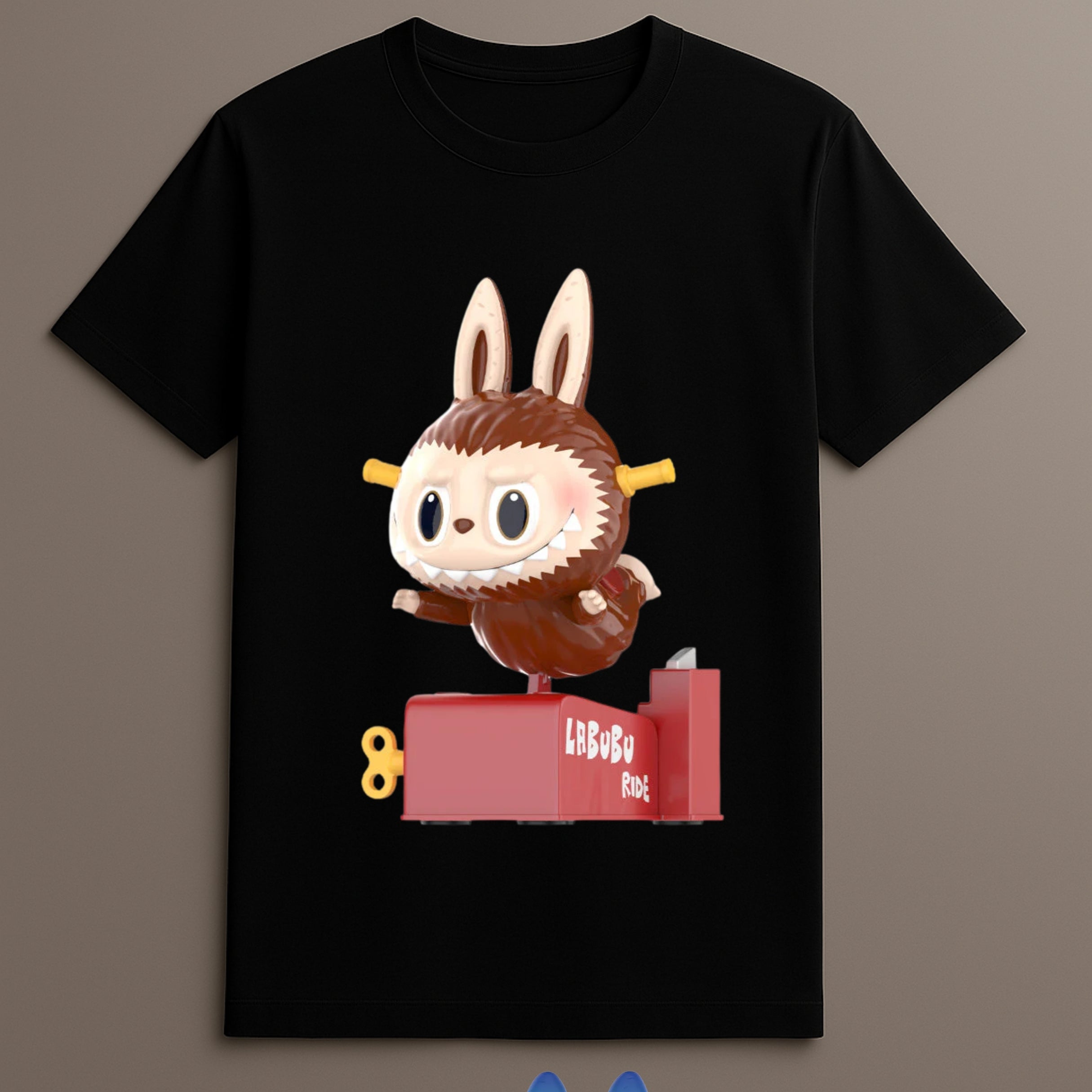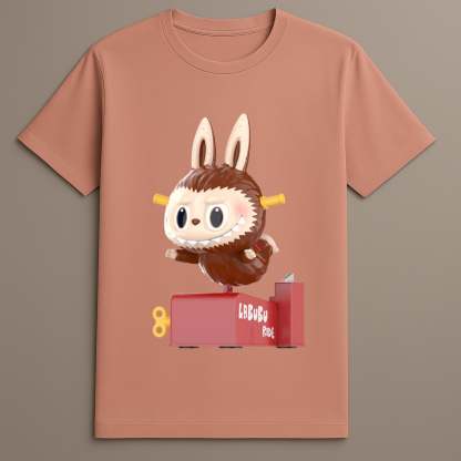 This T-shirt connects deeply with the collectible figure universe. The Almost Hidden Series is recognized for blending toy storytelling with unexpected character design. This particular print features Labubu in a ride-on toy setup — a thematic twist drawn directly from figure-based illustration. Whether you are building a wardrobe around blind box fashion, or simply want an interesting shirt rooted in character design.