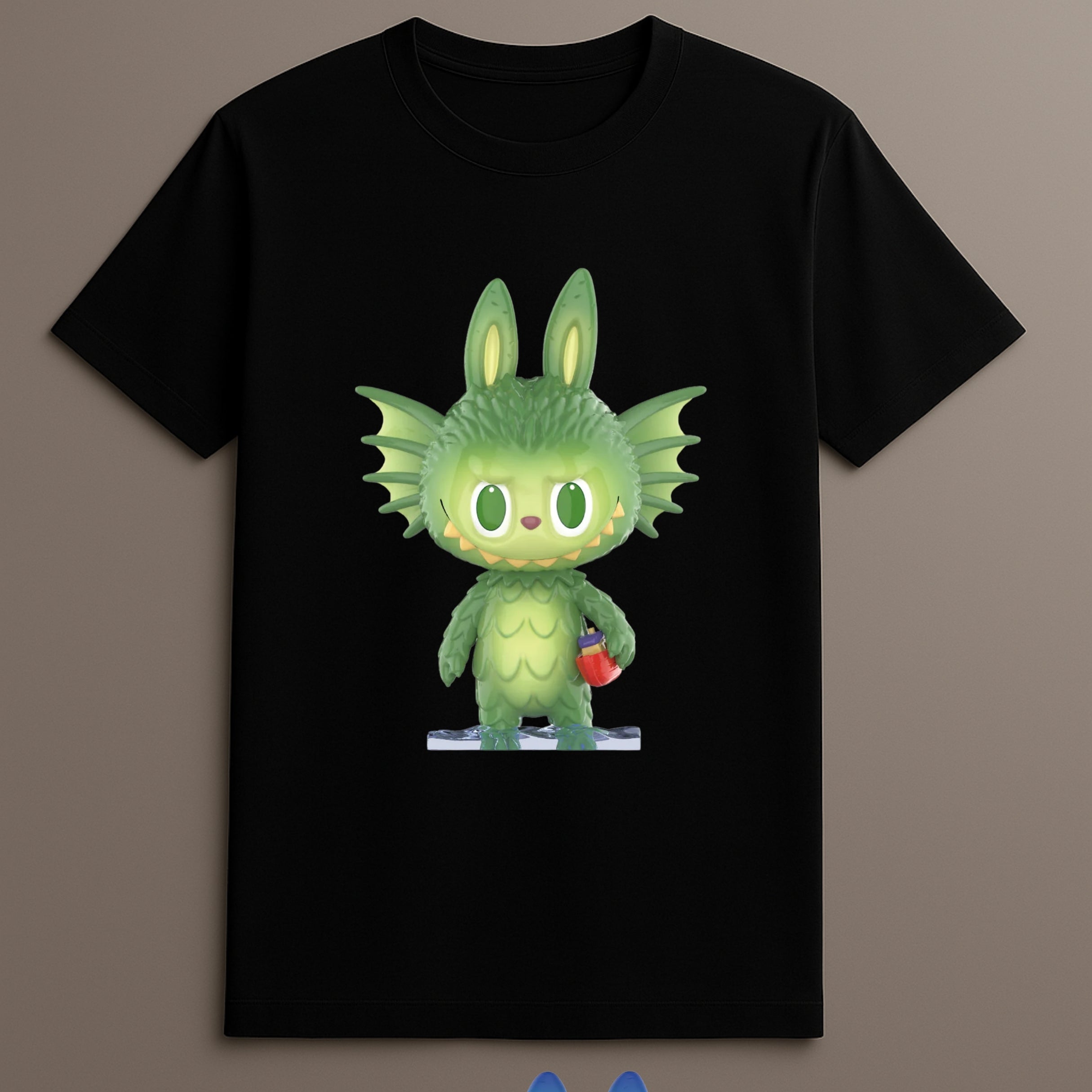 Step into expressive fashion with the Labubu Kaiju Creature T-Shirt, where art toy design meets everyday wear. Featuring a mischievous green character from the Kaiju Series, this graphic tee balances playful style with practical structure.