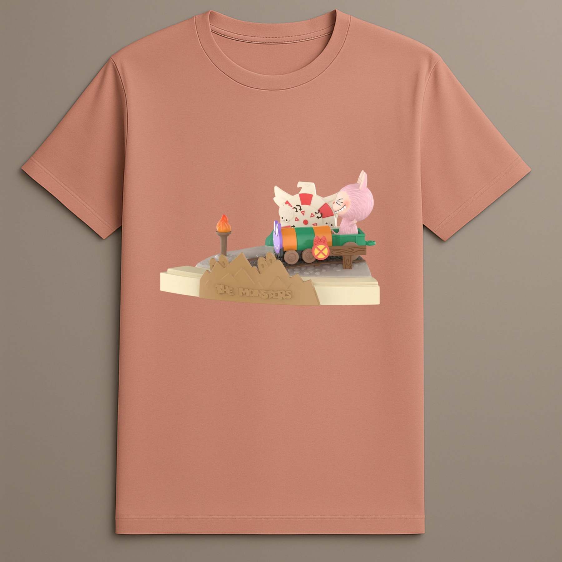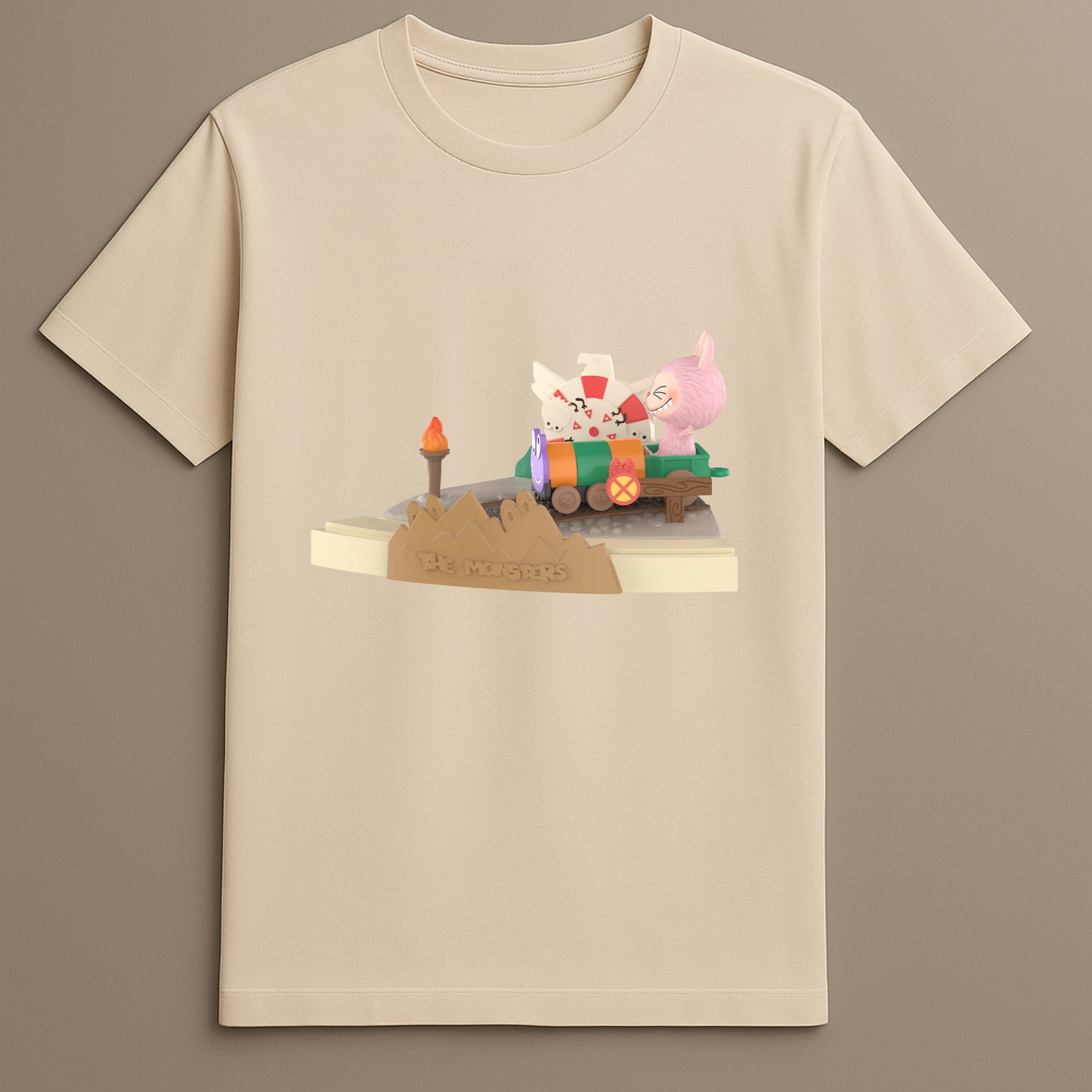 The Labubu Monsters Cart T-Shirt brings color, emotion, and storytelling together in a wearable piece of art. Featuring a theme park ride scene from The Monsters series, this character themed t-shirt lets you enjoy Labubu’s expressive world every time you wear it. From the cart ride motion to the vibrant tones, the print captures a moment filled with joy, mischief, and charm.
