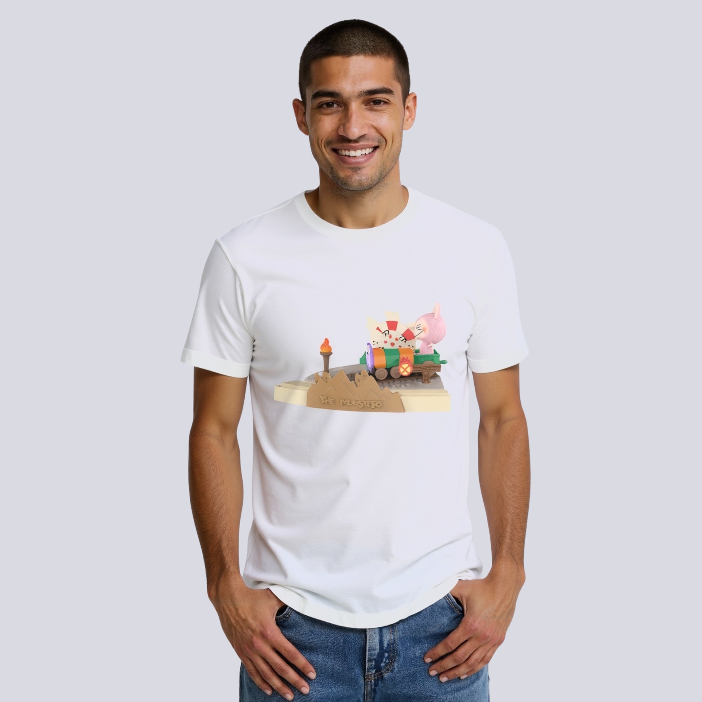 Character Themed T-Shirt: Visual storytelling built around Labubu and friends on a moving cart.
