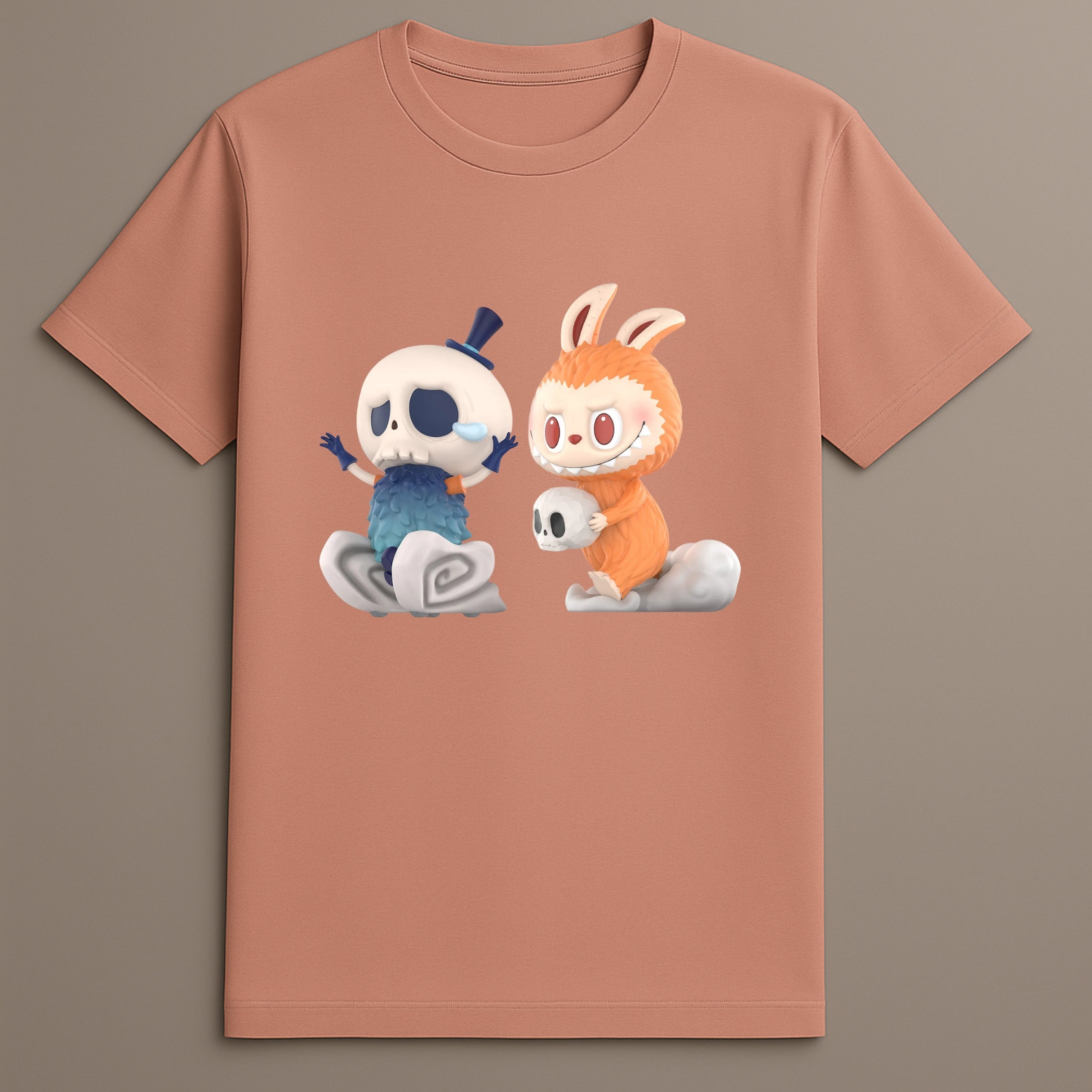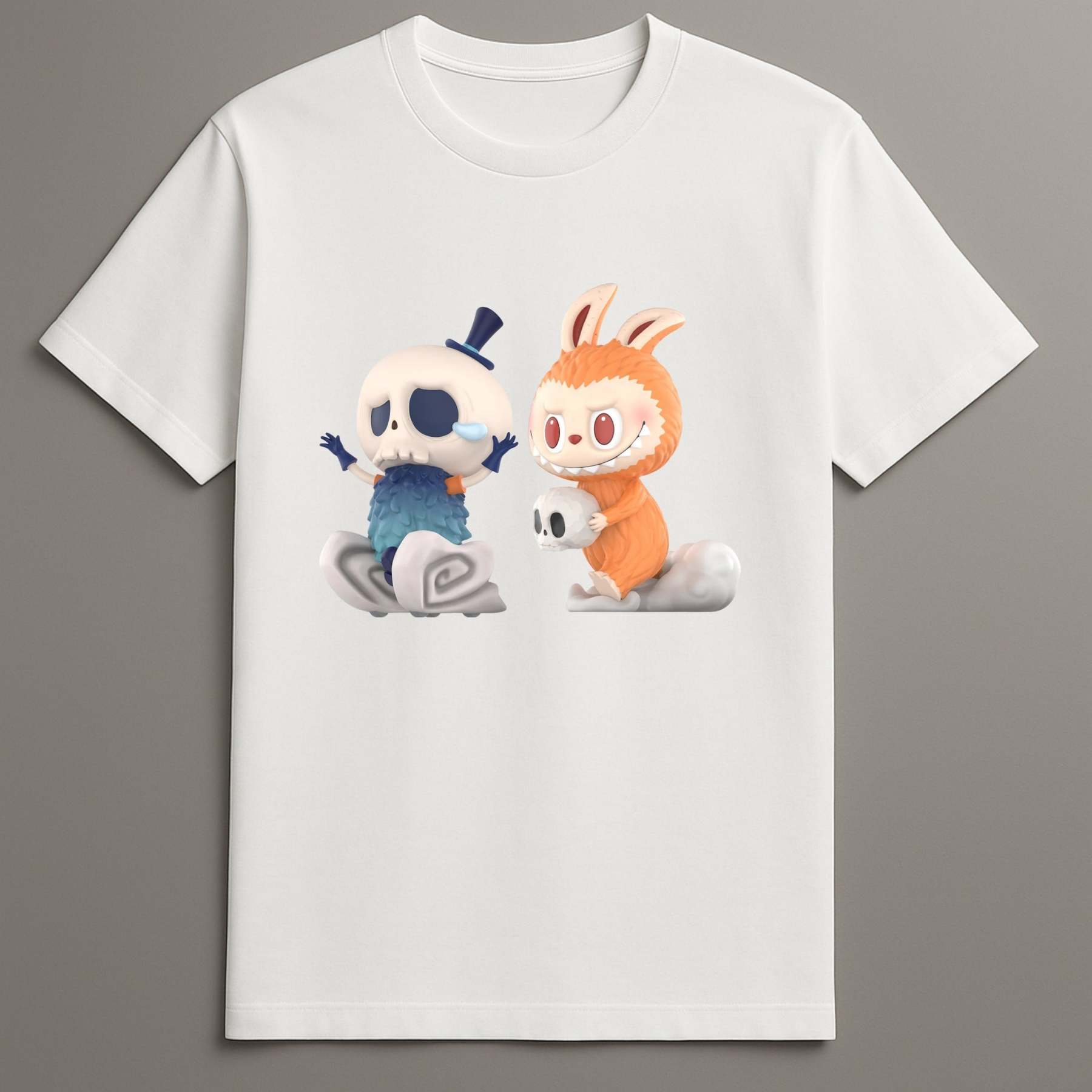 Expressive Character Tee: Details such as posture, shape, and features bring personality to both figures.