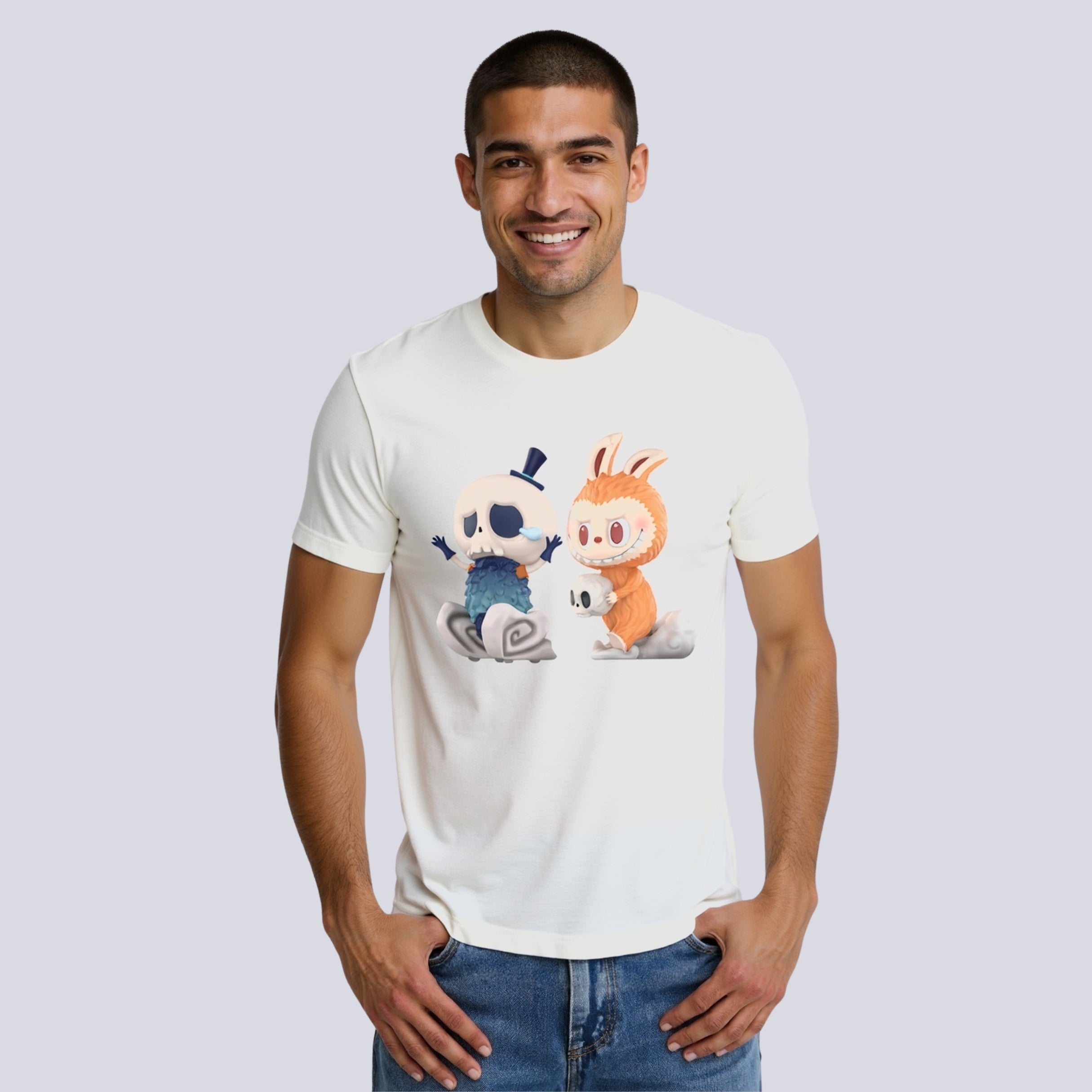 Crafted for fans of bold design and layered illustration, this Labubu graphic tee highlights character dynamics with artistic flair. Whether you're adding it to a personal collection or styling it for casual settings, this t-shirt offers a story driven t-shirt experience that speaks through every line, shadow, and motion. It is available in five color options and inclusive sizing, ready to suit your aesthetic preferences.