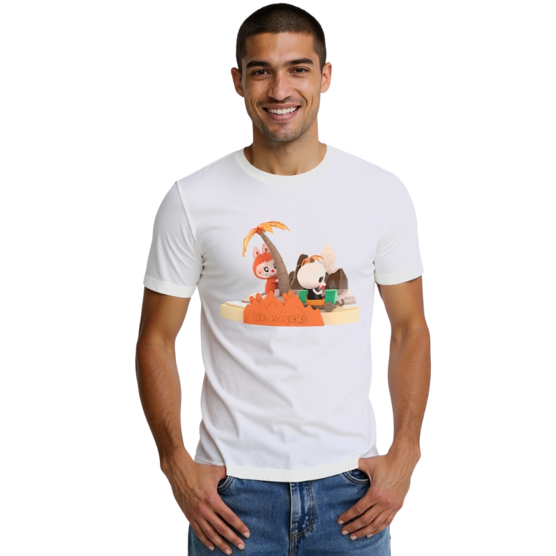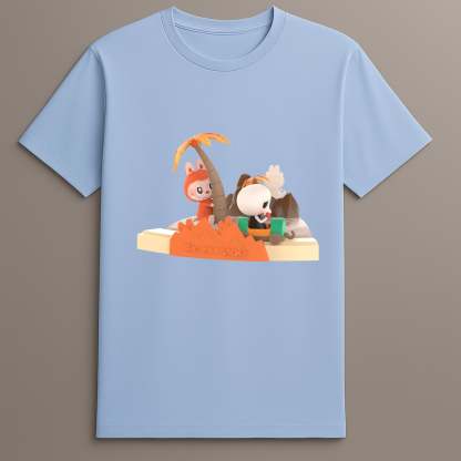 Whether you're a fan of narrative-driven clothing or simply looking for a fresh take on casual fashion, this Labubu graphic tee stands out. It bridges story, humor, and movement in one vibrant scene. The island design gives the tee a unique vibe—ideal for vacations, themed events, or days when you just want to add some fun to your outfit. This is more than just casual wear; it’s a visual journey.