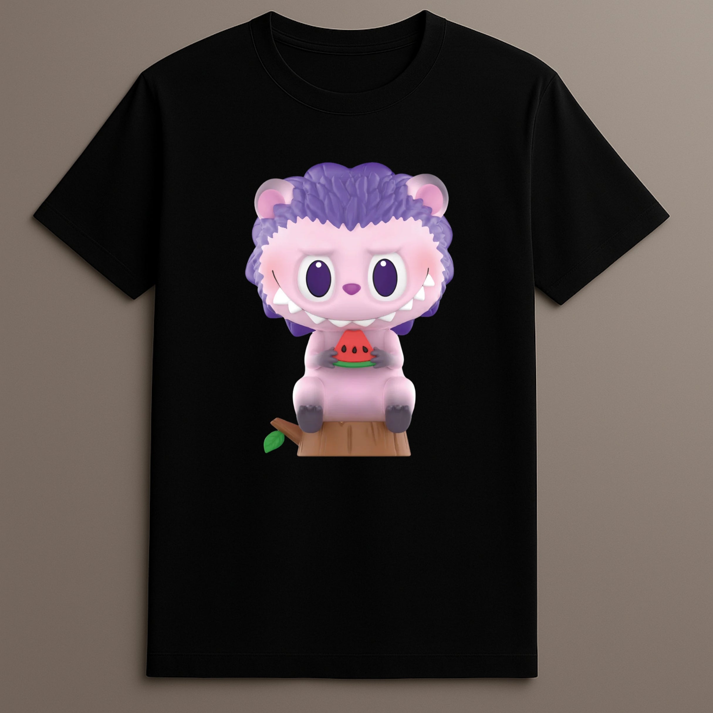Celebrate summer’s freshest visuals with the Labubu Watermelon Picnic T-Shirt. This seasonal graphic tee brings character-focused design into everyday fashion with a scene featuring a purple-maned creature enjoying a watermelon snack. Its soft tones and expressive outlook create an inviting, lighthearted moment grounded in simple illustration.