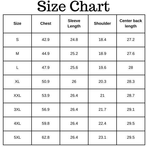 Size Chart (inches):