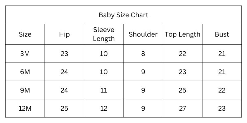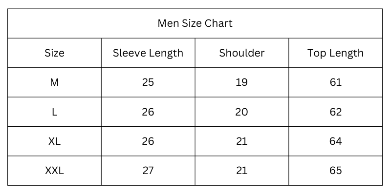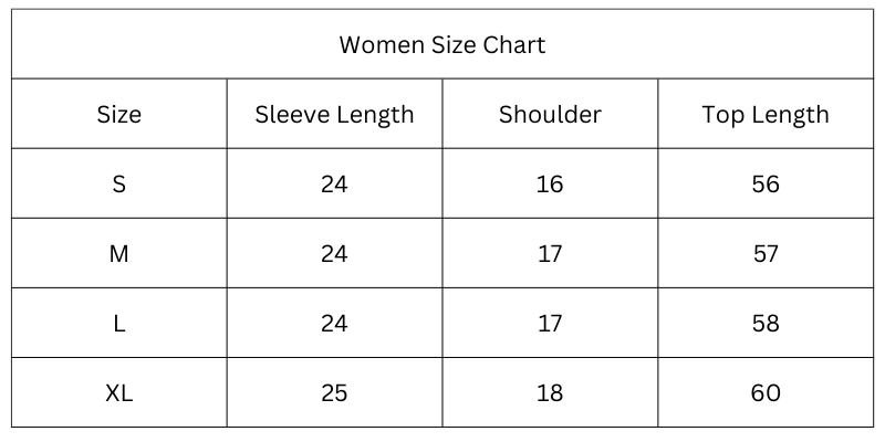 Size Chart (Inches):