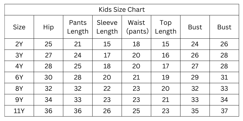 Size Chart (Inches):