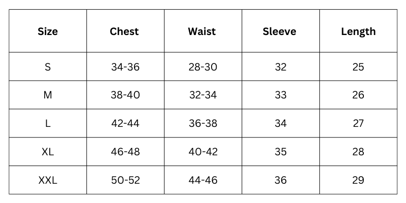 Size Chart(inches):