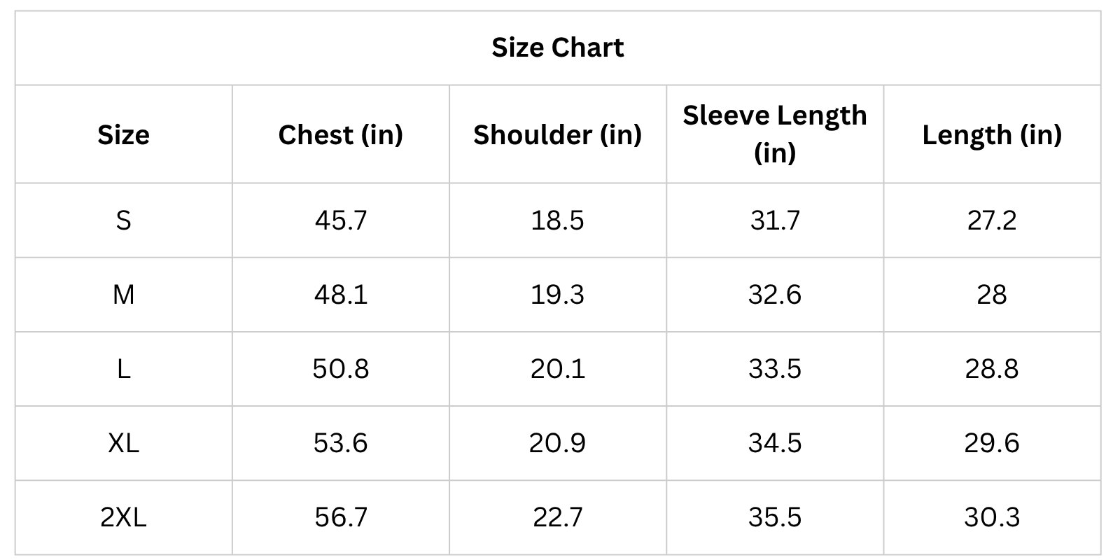 • Long Sleeves with Cuffs: Comfortable fit and coverage